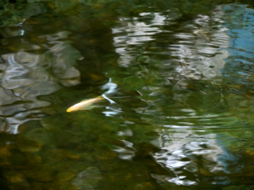I passed by a pond of what I thought were all orange koi fish. Then, out of the blue, I spied a white fish with gold accents. A ghostly figure that I really wanted to capture amidst the reflections in the water. Mostly unsuccessful … he kept dipping deeper into the water. But what I caught, and what I remember, are magical to me.