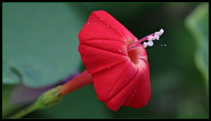 A 2014 seed gift that is a bright red flowering vine. trumpet shape flowers and dark green foliage..IMG_23271