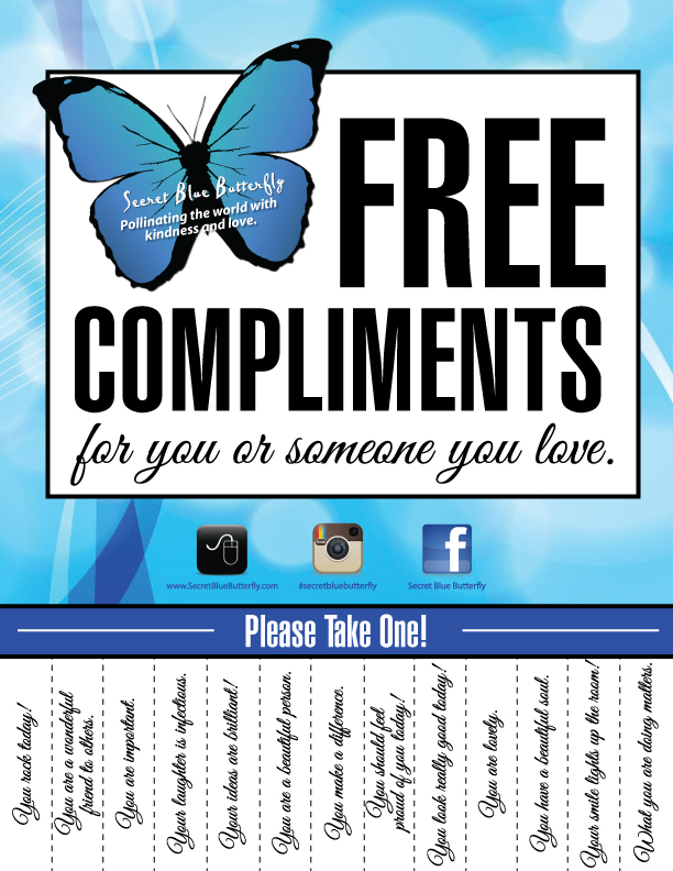 Print off these and just randomly give to people as a good deed. There is a whole community of blue butterfly secret people. Check it out!!!