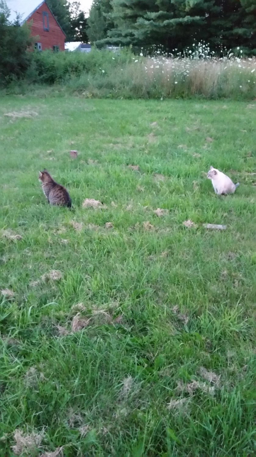 My kitties have just become so much more social and playful since we moved here. It scares me because they keep crossing the street so I try to get them to stay in back of the house. Did u know a cat considers a two mile radius to be there boundaries! !!! Two miles. Wow! I don’t want them to leave our one acre. I have been looking into ways to keep them away from the road but whatever I do they can just go around it!!