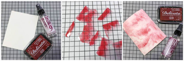 I am falling in love with the new craft mat, the grey color and the grid are perfect to work on any side and use it with your different mediums or inks. To create this card, I used Ruby Red Delicata Ink for the background texture and VersaFine Crimson Red to stamp the images. I took a piece of watercolor paper and over the mat I applied some touches of Delicata Ruby Red Ink and sprayed with Ink Potion No. 9, then I put the…