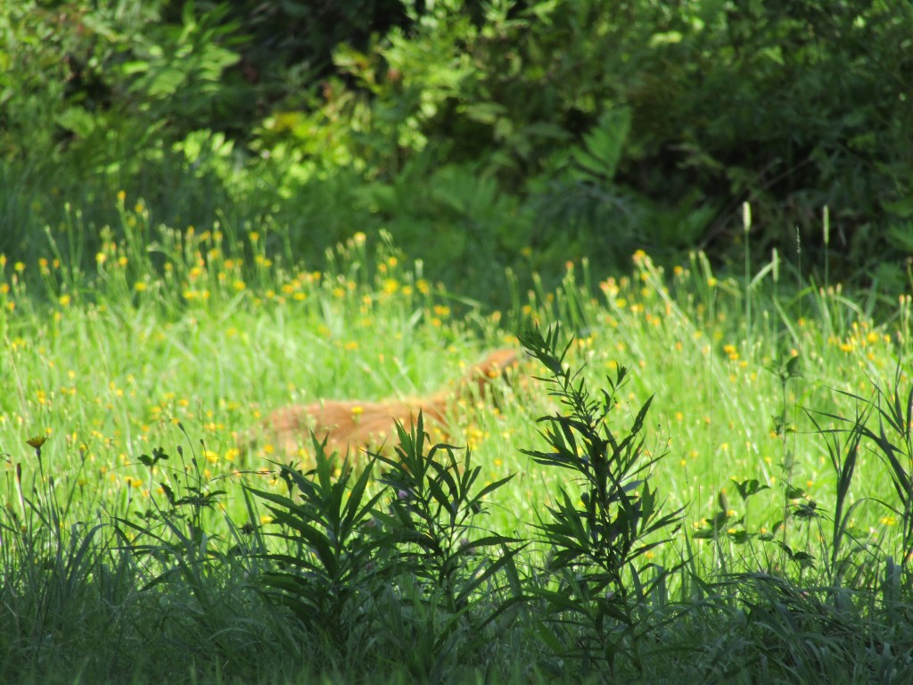 Then yesterday I heard her calling my name, she was quietly yelling to me from the yard. I heard get your camera and got all gitty!! This little guy or girl was cautiously coming towards us from the field out back. He stopped and looked when the kids yelled from behind us or any other loud noise drew his attention. He looked us over a couple times and then kept on his business. As we got closer to him I noticed no fear. Curiosity and caution but no fear.