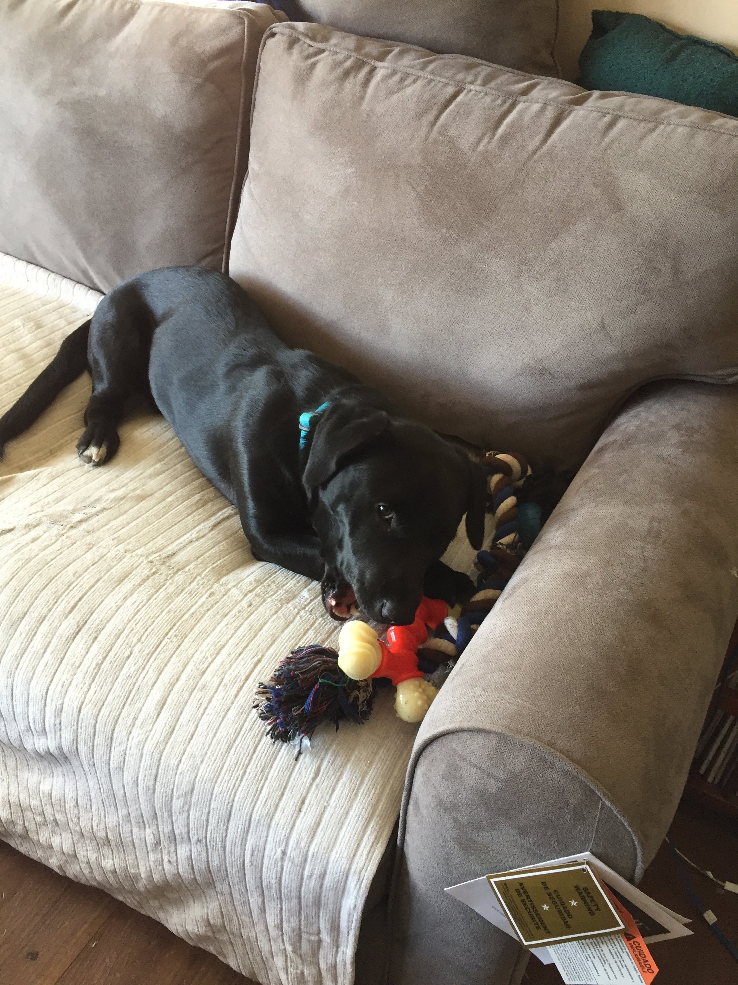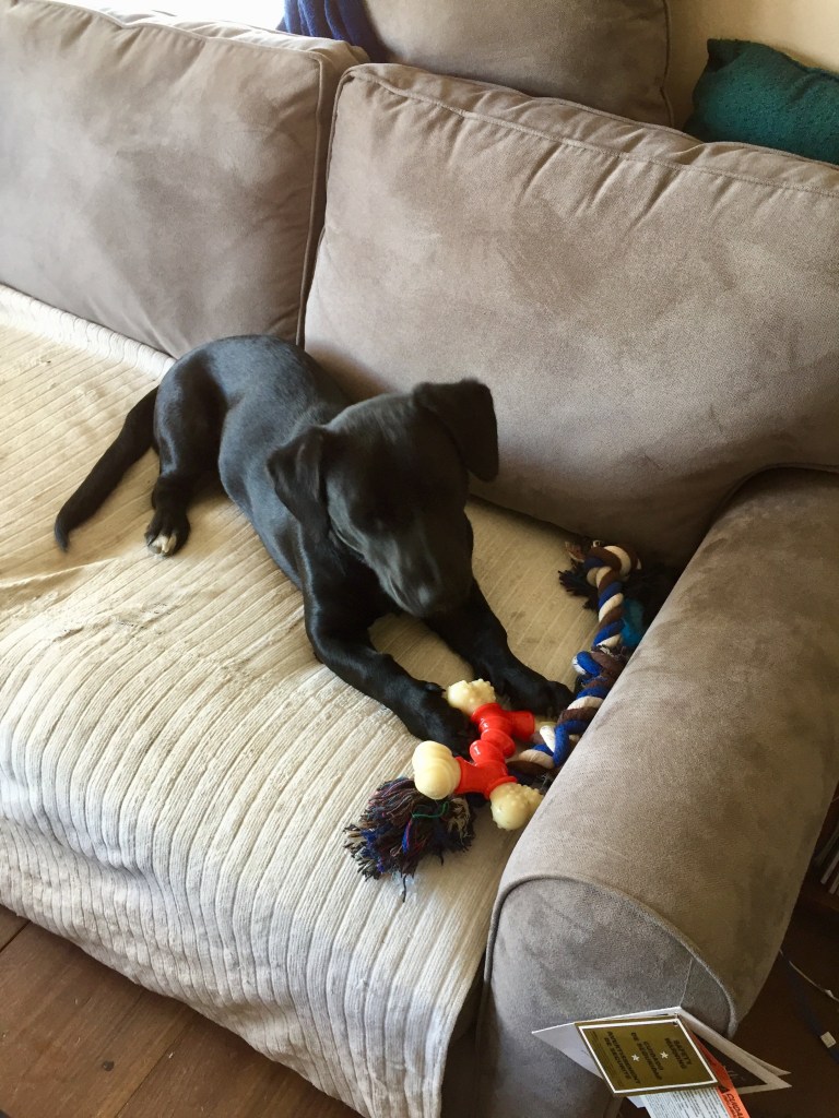 The neighbors dog, they used to play when he was a puppy, they have played less as they both aged. I believe my pup is 2 years older actually, so they played when the other was a pup.