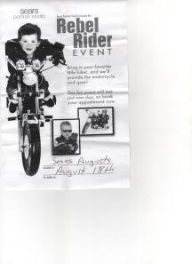 Have your little at SEARS AUGUSTA, on August 18 and have their picture taken on a motorcycle with leather jacket and all!!!! It is a one day only special.